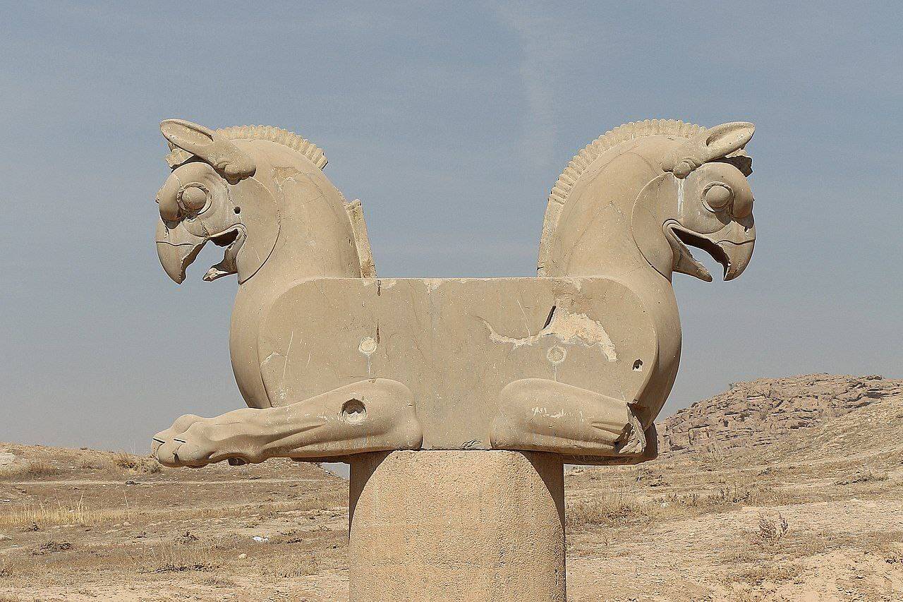 نمایی از سرستونهای اسفنکس تخت جمشید (اسفنکس به مجسمههای ساخته شده از تلفیق پیکر چند حیوان مختلف گفته میشود)