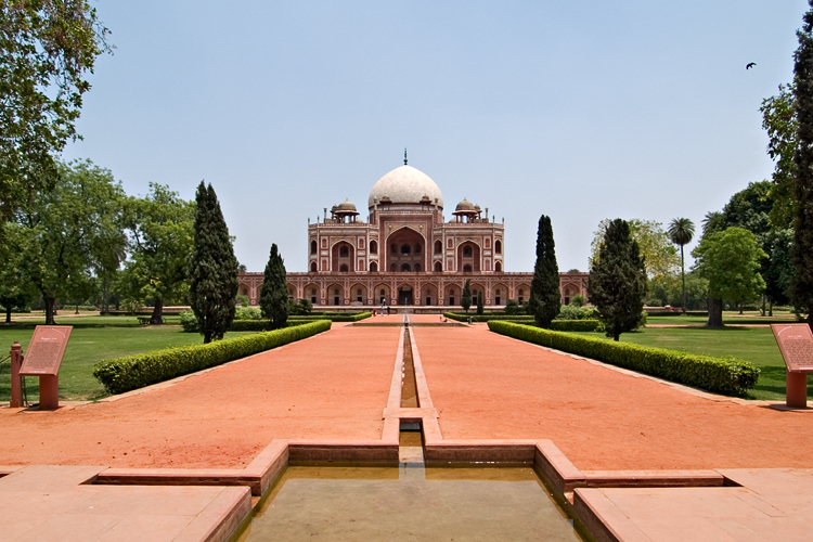 «آرامگاه همایون»، دومین پادشاه گورکانی یا امپراطوری مغولی هند. این مکان اولین الگوی باغ ایرانی در شبهقاره هند است.