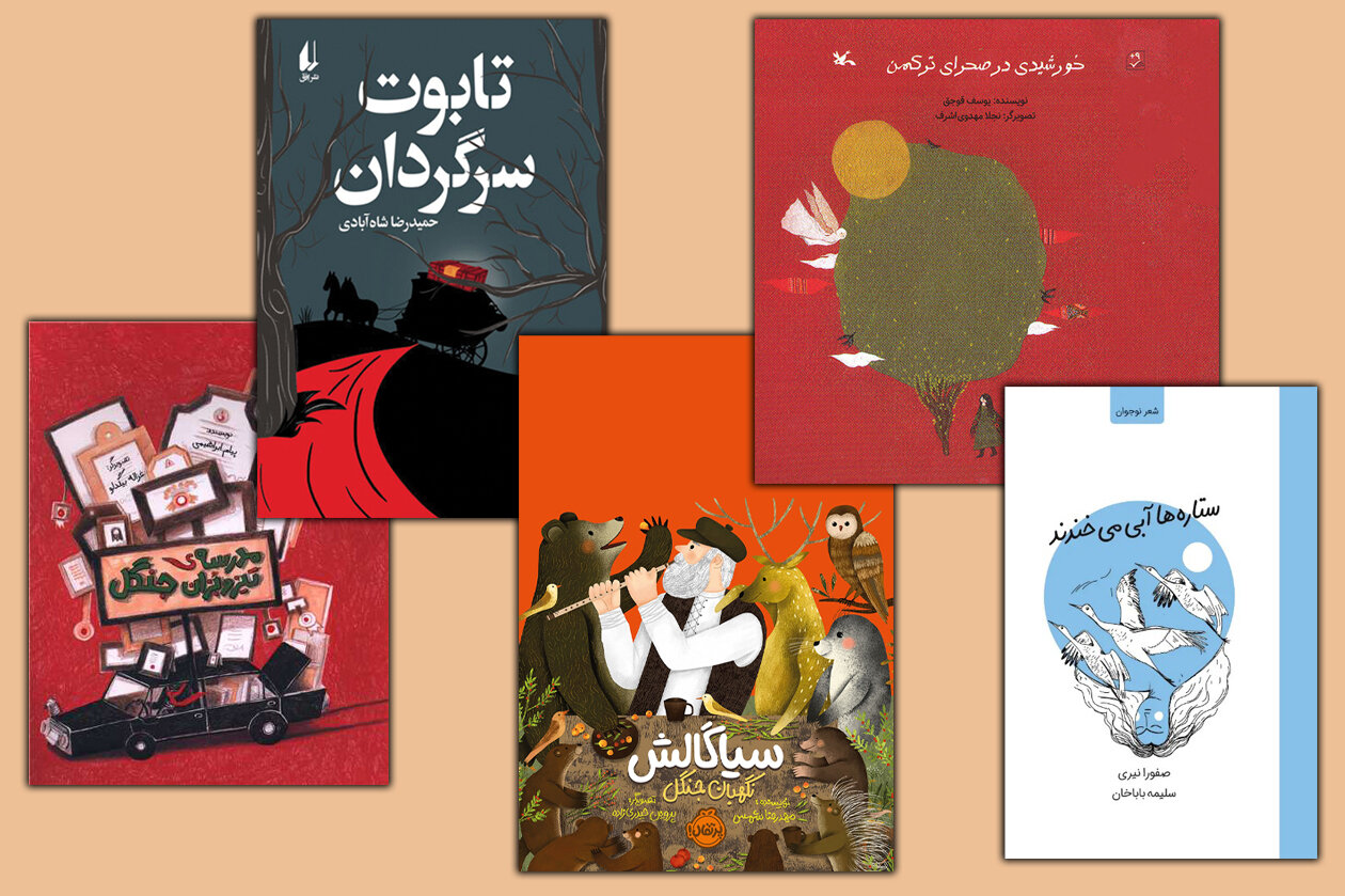 «خورشیدی در صحرای ترکمن»، نوشته‌ی «یوسف قوجق»، داستانِ دختر ترکمن و قالی‌بافی را روایت می‌کند که بعد از گفتن یک دروغ، دیگر نمی‌تواند فرش ببافد. کلمات این قصه و تصویرگری دیدنی‌اش از «نجلا مهدوی‌اشرف»، راوی صداقت‌اند که مثل ریسمان‌های یک فرش، رج به رجِ زندگی را پر می‌کند. در کنار این اثر، ۴ کتاب دیگر هم هر کدام به گوشه‌ای از جهان ادبیات کودک و نوجوان سفر کردند! «مدرسه‌ی تیز و بزان جنگل»، به قلم «پیام ابراهیمی» و «غزاله بیگدلو»، به موضوع تحصیل سرمی‌زند، «ستاره‌ها آبی می‌خندند» با شعرهای دلنشین «صفورا نیری» برای نوجوانان، رنگِ خنده می‌پاشد، «تابوت سرگردان» از «حمیدرضا شاه‌آبادی» در ژانر تاریخی-فانتزی سیر می‌کند و «سیاگالش، نگهبان جنگل» نوشته‌ی «محمدرضا شمس»، هم نمادی از دوستی و رفاقت با طبیعت می‌شود.