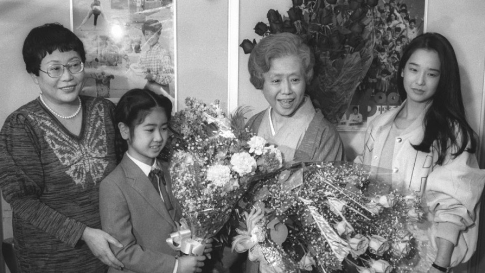 «سوگوکو هاشیدا» کارگردان سریال (نفر اول از اسمت چپ) به همراه «یوکو تاناکو»، «نوبوکو اوتاوا» و «آیاکو کوبایاشی» بازیگران شخصیت اوشین در سنین مختلف