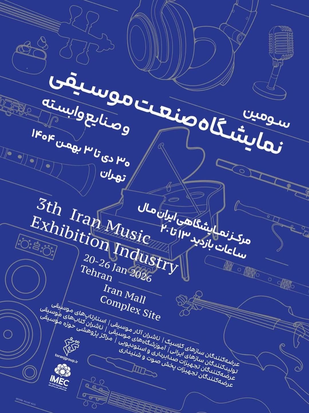 به گزارش مجله میدان آزادی به نقل از روابط عمومی نمایشگاه صنعت موسیقی، سومین نمایشگاه «صنعت موسیقی وصنایع وابسته» که با مجوز اداره کل موسیقی وزارت فرهنگ وارشاد اسلامی و اداره کل صمت استان تهران از تاریخ  ۳۰ دی تا ۳ بهمن ۱۴۰۴ در مرکز نمایشگاهی ایران مال برگزار خواهد شد، هدف از برپایی نمایشگاه این است که، فعالان عرصه تولید و توزیع آثار موسیقی اعم از: تولید کنندگان و عرضه کنندگان سازهای ایرانی، عرضه کنندگان تجهیزات صدابرداری واستودیویی، آموزشگاه‌های موسیقی، مراکز پژوهشی حوزه موسیقی، ناشران آثار موسیقی، استارتاپ‌های موسیقی، ناشران کتاب‌های موسیقی، عرضه کنندگان سازهای کلاسیک وعرضه کنندگان تجهیزات پخش صوت و شنیداری را زیر یک سقف گردآورده تا از همنشینی و همفکری دست اندرکاران عرصه موسیقی، زمینه رشد و تعالی این هنر، صنعت بومی فراهم شود.