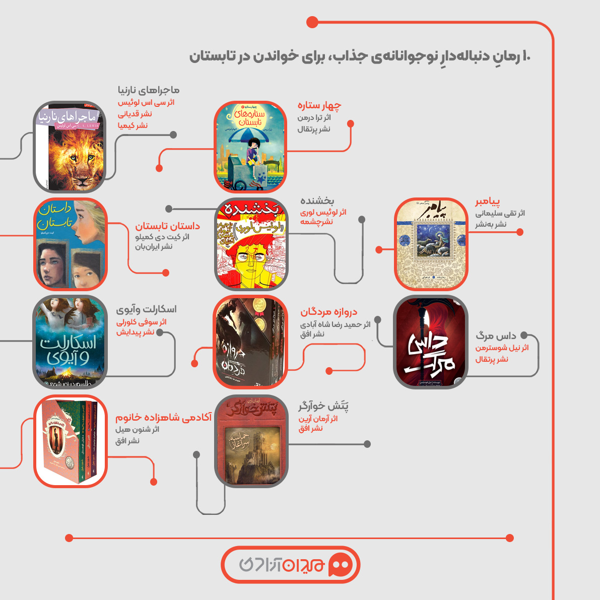 مجله میدان آزادی: در صفحه دوم از مطالب مجله برای روز ملی ادبیات کودک و نوجوان، خانم «زینب ایمانطلب» -کارشناس ارشد ادبیات کودک و نوجوان- ده مجموعه داستانِ دنبالهدار برای مخاطب نوجوان را از میان انبوهی از کتابهای این حوزه، برگزیده و به مخاطبان مجله -به خصوص دوستان نوجوانمان- معرفی کرده است. این فهرست را با توضیحی دربارهی هر کتاب در ادامه خواهید خواند: