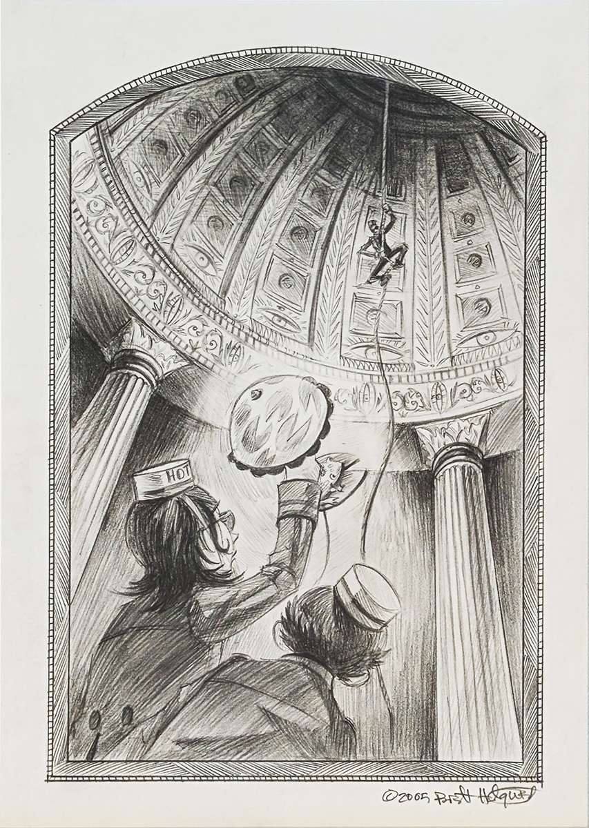 تصویرگری ورود «دیویی دینومان» در کتاب «ماجراهای بچههای بدشانس» از «برت هلکویست»
