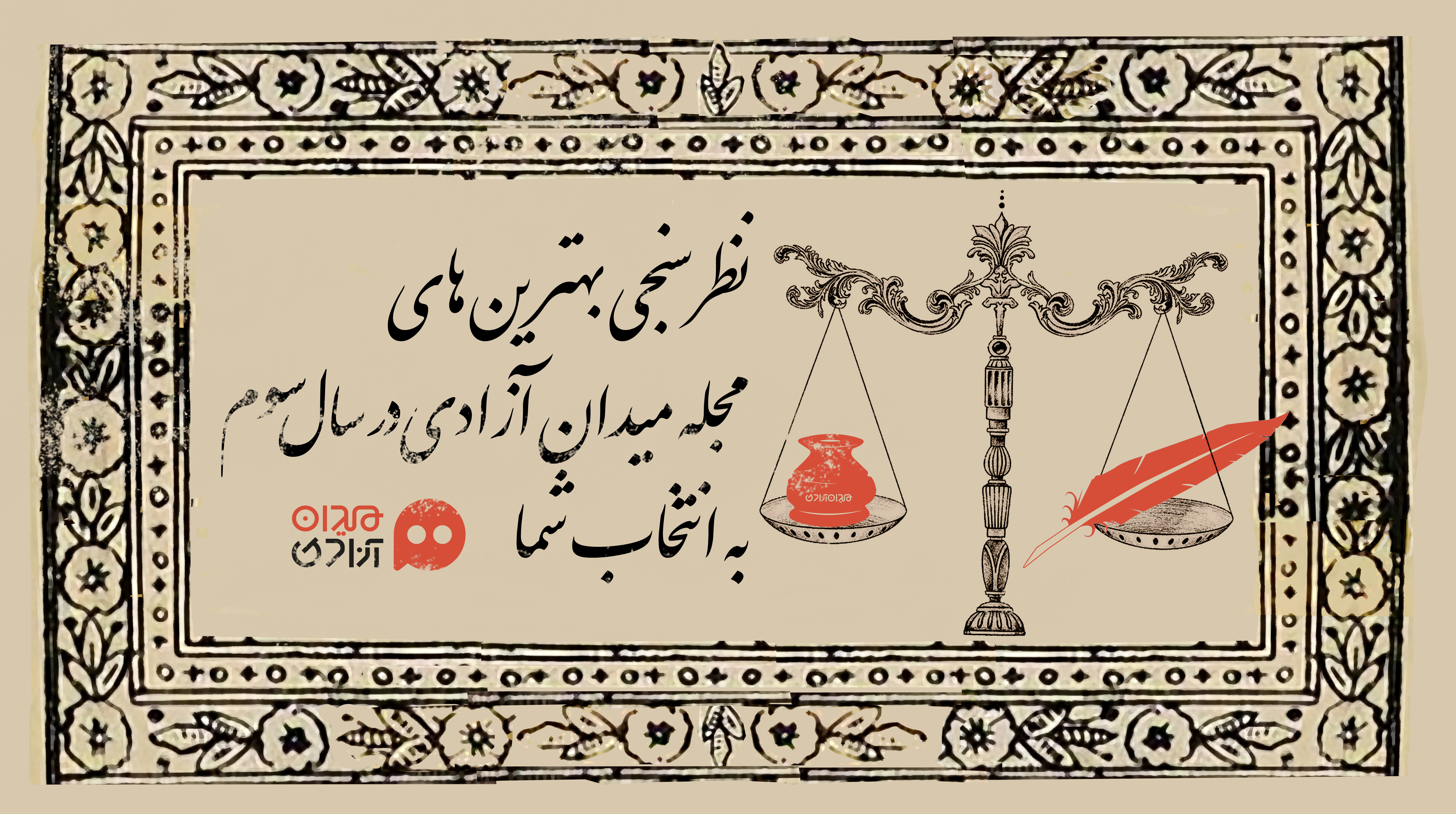 مجله میدان آزادی: نظرسنجی از شما مخاطبین گرامی مهمترین بخش پروندهی «حسب حالنامه»ی سالانه ماست. به رسم هرسال، شما را دعوت میکنیم تا بهترینهای مجله میدان آزادی را در سالی که گذشت انتخاب کنید.