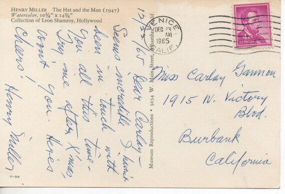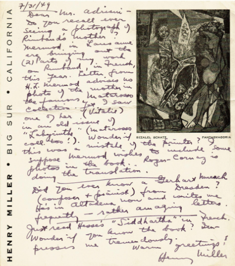 نامۀ دستنویس «هنری میلر» به تاریخ ۷ اوت ۱۹۴۹، خطاب به Bruno Adriani (تاریخنگار هنر آلمانی-آمریکایی)