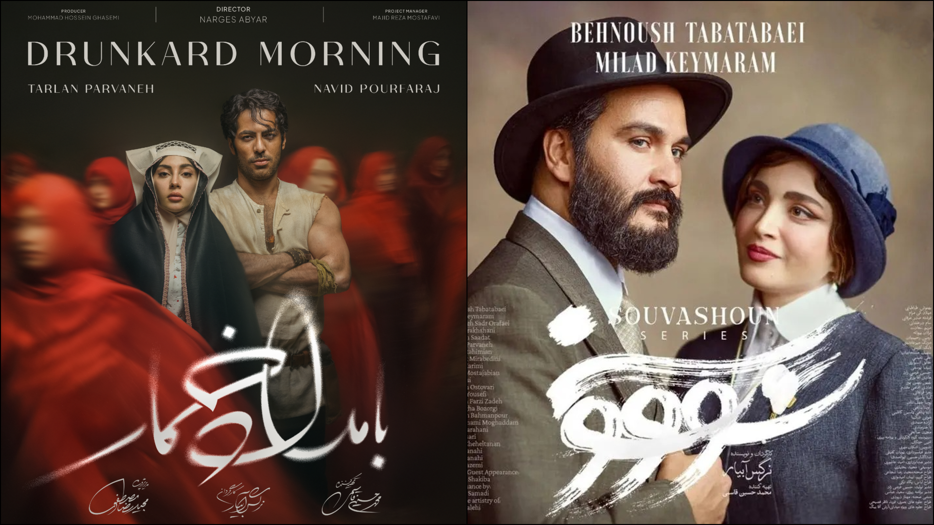 قسمت اول سریال «سووشون» به کارگردانی «نرگس آبیار» و تهیهکنندگی «محمدحسین قاسمی» در خرداد ۱۴۰۴ از پلتفرم نماوا منتشر شد. فصل اول پس از چهارده قسمت به پایان رسید. با فاصلۀ کمی از پایان «سووشون»، پخش سریال «بامداد خمار» از پلتفرم شیدا آغاز شد و تا امروز که این یادداشت نوشته میشود هشت قسمت از آن پخش شده است. «بامداد خمار» را نیز نرگس آبیار کارگردانی کرده است، به تهیهکنندگی «حسن مصطفوی».