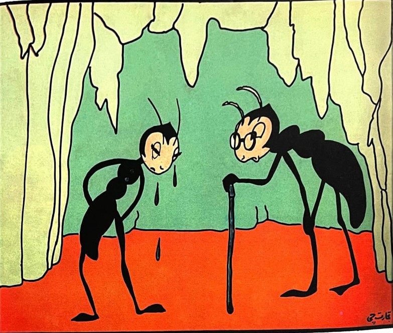 تصویرگری قصه «خاله سوسکه و آقا موشه» (1337) که آقا موشه کاملا مطابق «میکی موس» دیزنی است.