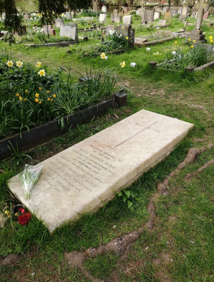 سنگ مزار «سی. اس. لوئیس» در حیاط کلیسای «ترینیتی مقدس»، با نقل قولی از شاه لیر شکسپیر: «مردان باید رفتن از اینجا را تحمل کنند.»