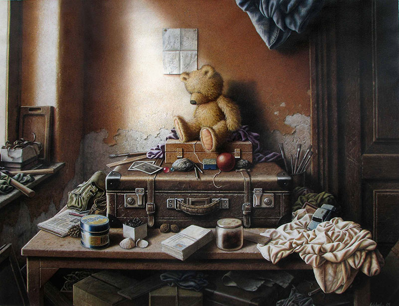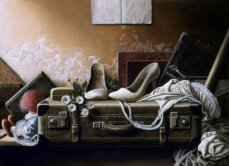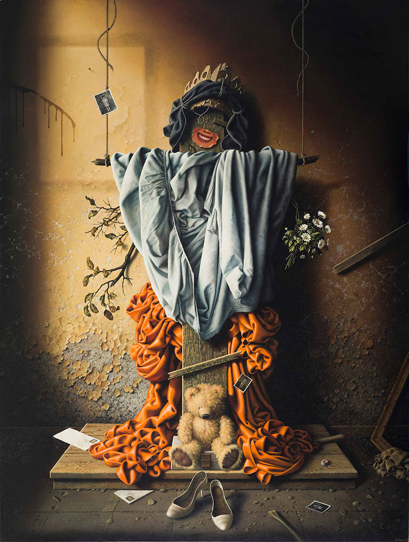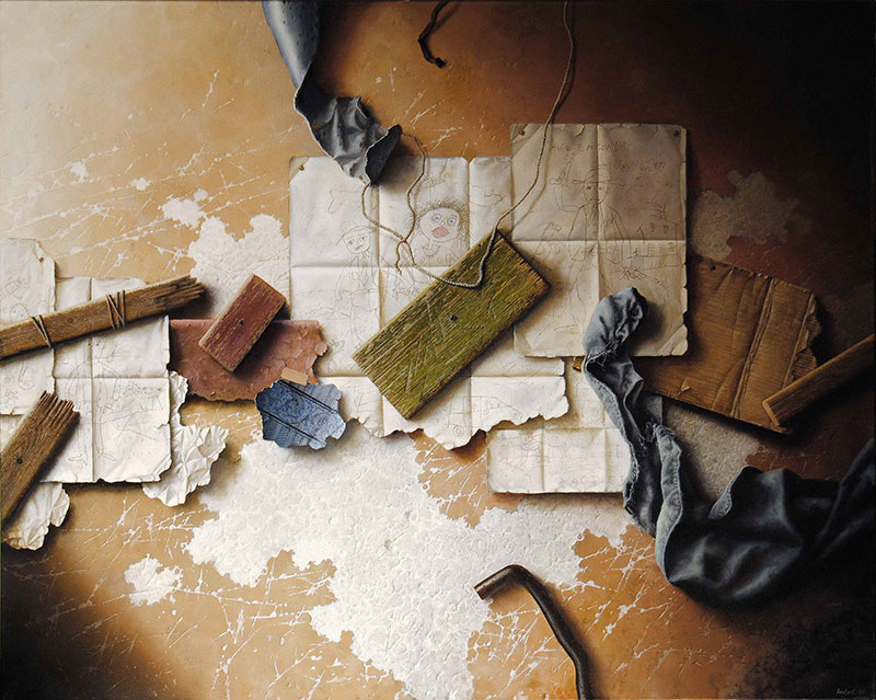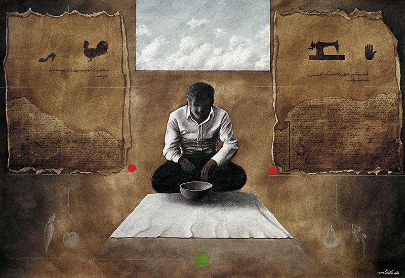 سال بعد از آن، دومین نمایشگاه انفرادی خود را در تالار «قندریز» برگزار کرد. در این مجموعه، عناصر نامتجانس و متنوعی مانند پیچ، استخوان، سیب، اسفنجهای دریایی، ابر و گل کنار اشیای مدرن و صنعتی قرار گرفتند؛ ترکیبی از اشیای طبیعی و بومی با نشانههای تمدن مدرن که در کنار سطوح تخت و ایستا، تضاد و پویایی خاصی در آثار ایجاد میکرد. روش کار او در این دوره بر واقعنمایی مبتنی بود و از فضای رنگی نقاشی کلاسیک اروپایی بهره میبرد. دو عامل اصلی در شکلگیری این دوره از آثار او مؤثر بودند: علاقۀ واقعی او به نقاشی اشیا، همانگونه که دیده میشوند و نیاز به ترکیب این عناصر در قالبی هنری. نتیجه، فضایی سورئالیستی بود که بعدها نیز ویژگیهای آن در آثارش تکرار شد.