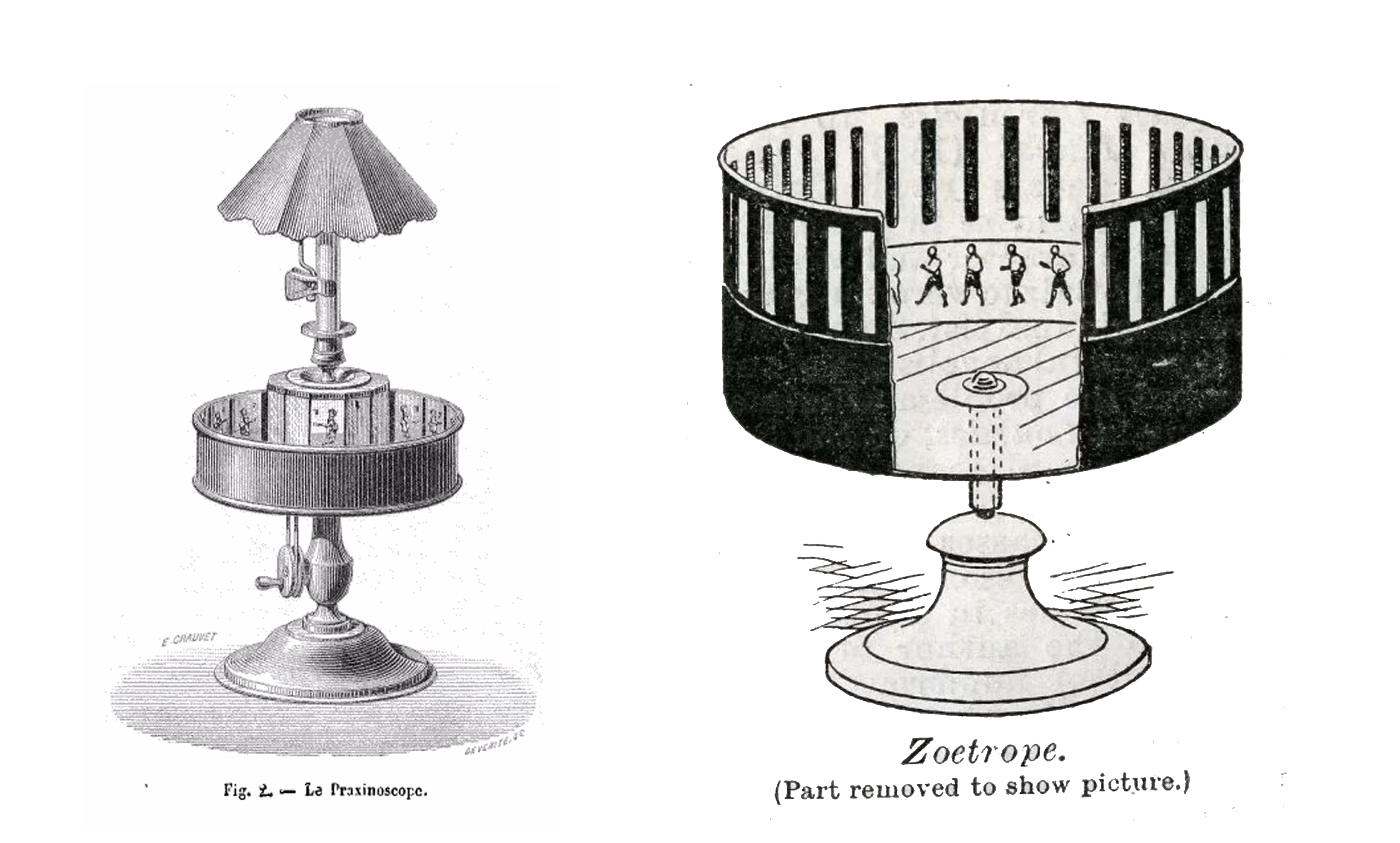 پراکسینوسکوپ و زئوتروپ، ابزارهایی برای ایجاد توهم حرکت در تصاویر