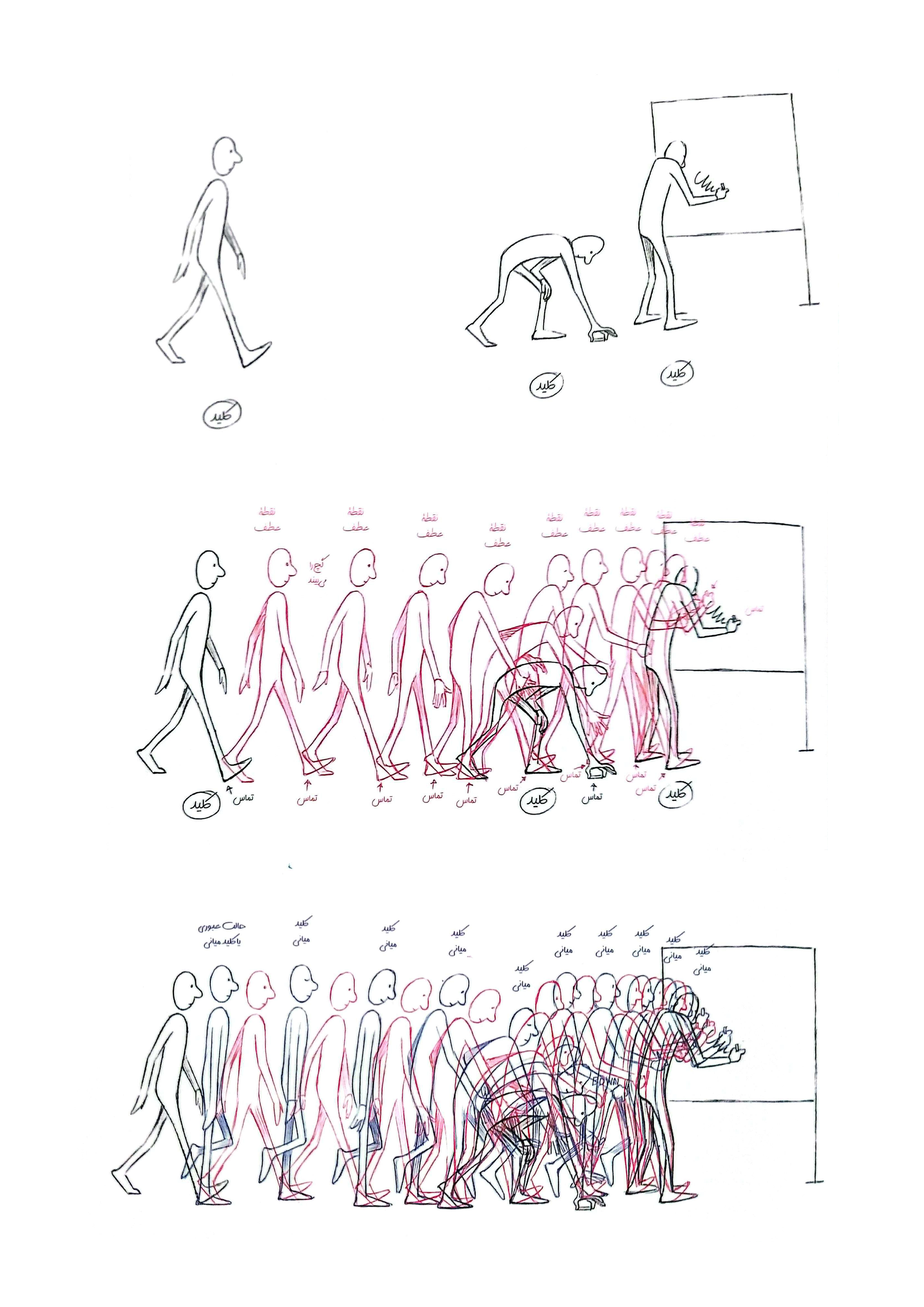 فرآیند طراحی حرکت در انیمیشن دستی، منبع: «راهنمای جامع انیمیشن» اثر ریچارد ویلیامز