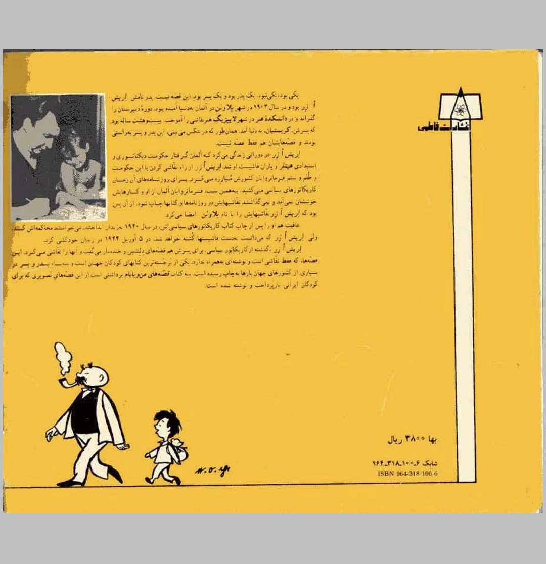 در پشت نسخهی قدیمی ما، تصویری از اریش ازر و پسرش بود. پدر و پسر در کنار هم نشسته بودند و پدر مشغول نقاشی کردن بود و در کنار عکس، توضیحاتی از زندگی ازر نوشته شده بود. توضیحات پشت جلد میگفت که این کتاب حاصل تصویرها و قصههایی است که ازر برای پسرش کشیده است و کودکیِ من همیشه تصور میکرد که پدر و پسر در کنار هم نشستهاند (درست مثل عکس) و پدر داستانهای من و بابام را برای پسرش تعریف میکند تا بعداً تبدیل به کتابی شود و به دست من برسد، حتی تا همین امروز هم همین فکر را میکردم!