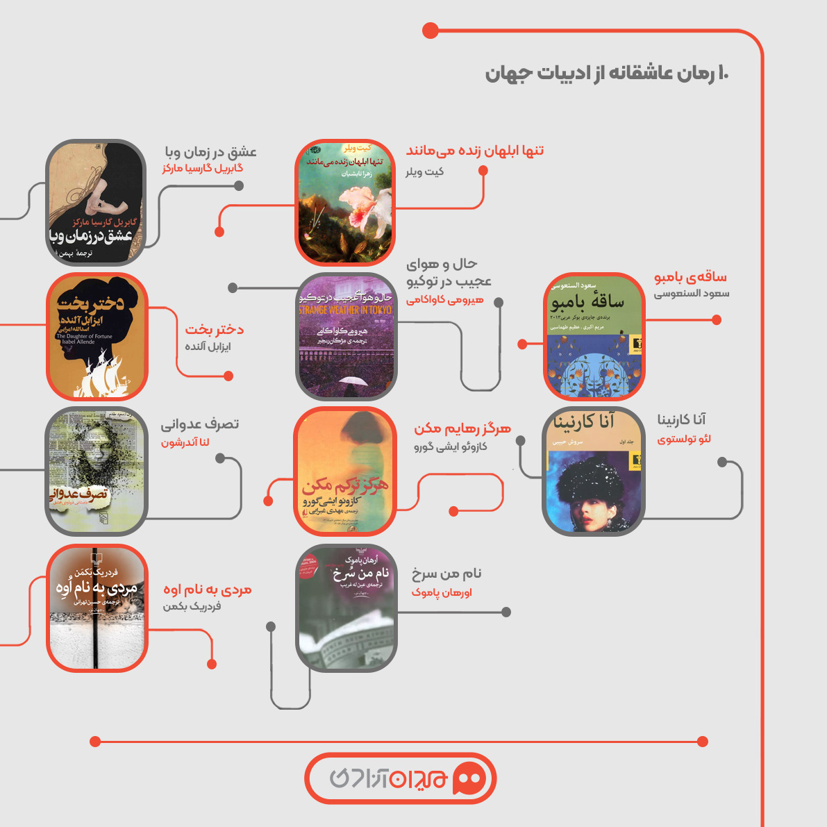 فهرستی که پیش روست سعی دارد رمانهایی را معرفی کند که عشق ردپایی محسوس و واضحی در بدنهی داستان آنها دارد.