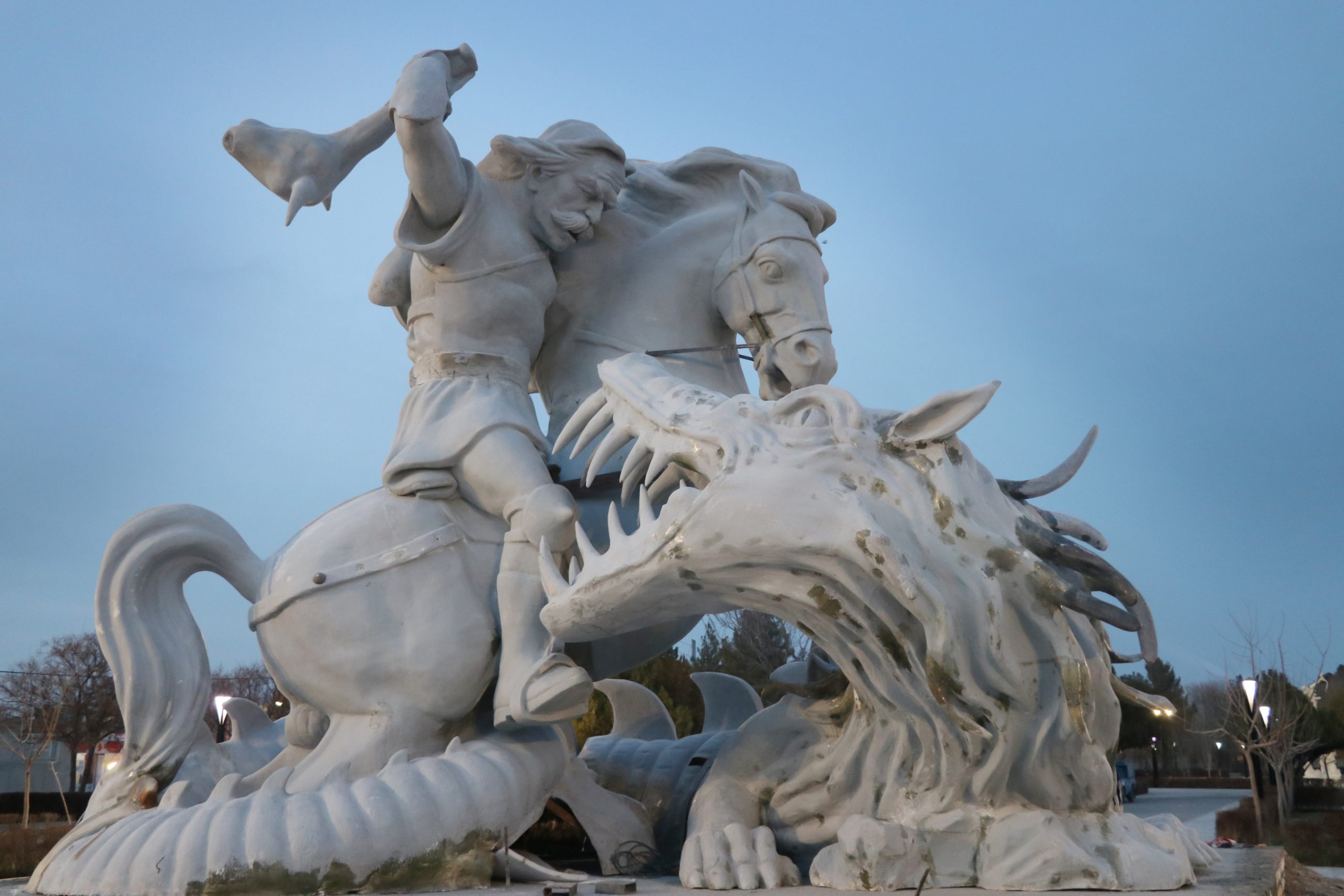 یادمان نبرد «سام نریمان با اژدهای کشفرود»، محوطه آرامگاه فردوسی