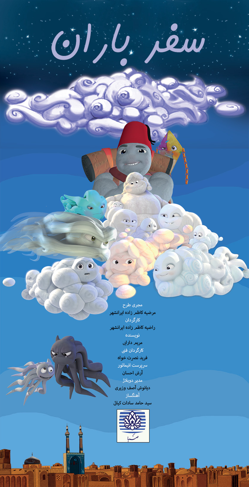 فیلم سینمایی هفتاد و پنج دقیقهای به کارگردانی «مژگان کهریزی» و «راضیه کاظمزاده ایرانشهر» و به قلم «هاله دارابی» که در لایههای زیرینش دربارهی اقلیمهای مختلف ایران و تأثیر بارش بر روی اکوسیستمها به مخاطب اطلاعات درستی میدهد. داستان دربارهی سه تکه ابر است که از دریا دور شده و سفری را از البرز آغاز کرده و سپس از زاگرس میگذرند. در این سفر آنها با انواع بادها و چندین شهر آشنا میشوند و آخرسر تصمیم میگیرند بهجای بازگشت به خانه در سرزمینی که بیشتر به باران نیاز دارد، ببارند.