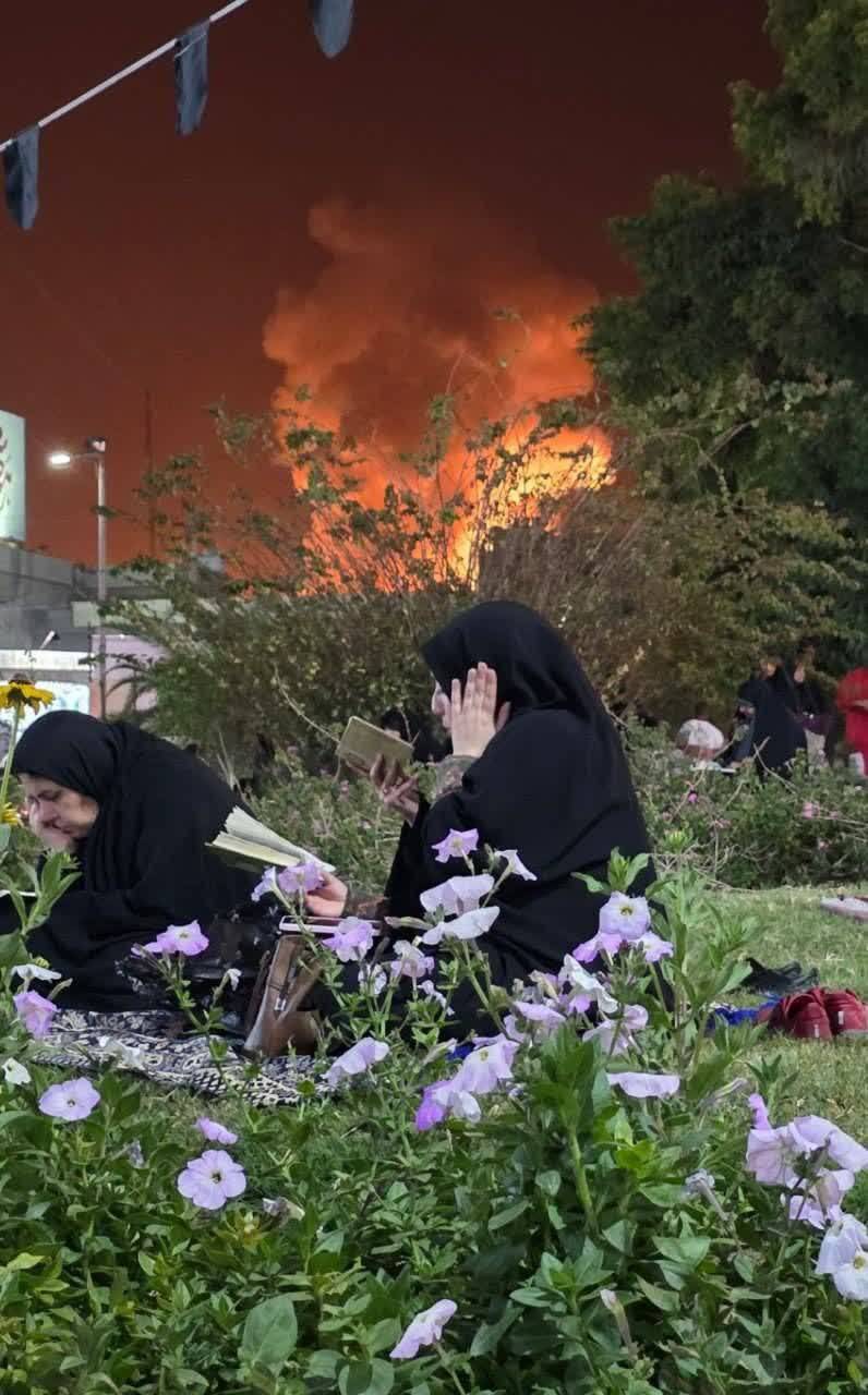 ادامهٔ قرائت قرآن توسط زنان بوشهری با وجود نزدیکی انفجارها.
