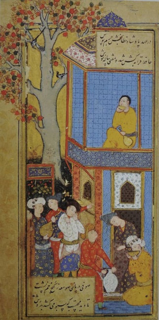 دیدار دو  دلداده در باغ با روایت‌های متعدد منتسب به «شیخ‌زاده» یا «سلطان محمد» و یا «آقا میرک» است.