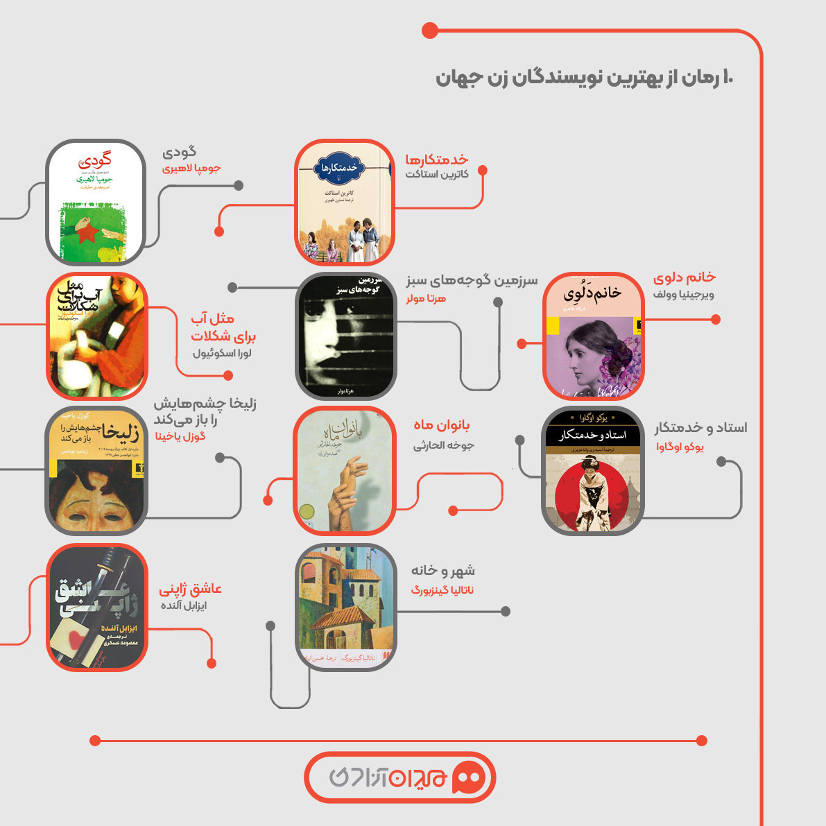ما در این فهرست به سراغ نویسندگان زن رفتهایم؛ زنانی که جهان ادبیات به زن بودنشان احترام گذاشت و حالا چرخهای ماشین ادبیات روی شانۀ کتابهای آنان نیز میچرخد. ویژگی این فهرست این است که در آن به سراغ نویسندگان زن معاصرتر رفتهایم و از کلاسیکها کمی فاصله گرفتهایم. نویسندگانی که با فاصلهی کمی یا خیلی نزدیک در همین روزگار ما زیستهاند یا زیست میکنند؛ پس این شما و این فهرست 10 رمان از 10 نویسنده زن جهان.