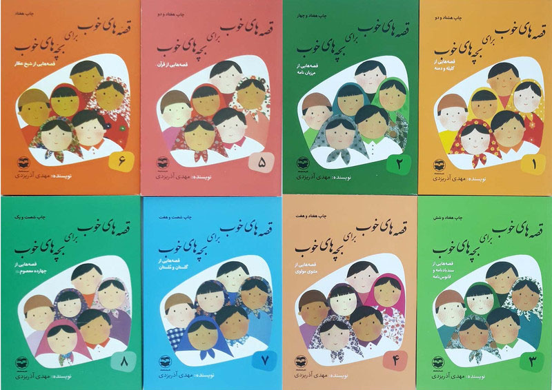 جناب مهدی آذریزدی در مجموعهی «قصههای خوب برای بچههای خوب» بهسراغ منابع مختلف ادبی رفته و داستانهای مناسب سن کودکان و نوجوانان را استخراج کرده است. این مجموعه را انتشارات امیرکبیر در هشت جلد و به شرح زیر منتشر کرده:
