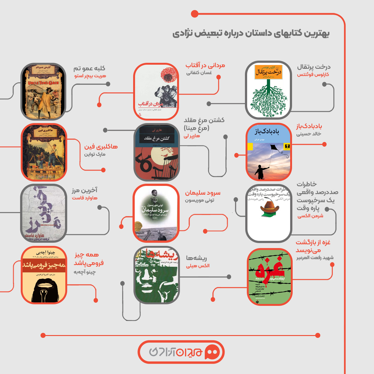 مجله میدان آزادی: در چهلم و ششمین صفحه از پرونده «اردیبهشت کاغذی» و «فهرست کتابهای پیشنهادی برای خرید از نمایشگاه کتاب» فهرستی از مجموعه کتابهای شاهکار ادبیات جهان با موضوع تبعیض نژادی را برای دوستداران این موضوع تدارک دیدهایم. تازهترین صفحه را با قلم مجید اسطیری -نویسنده و منتقد- بخوانید: