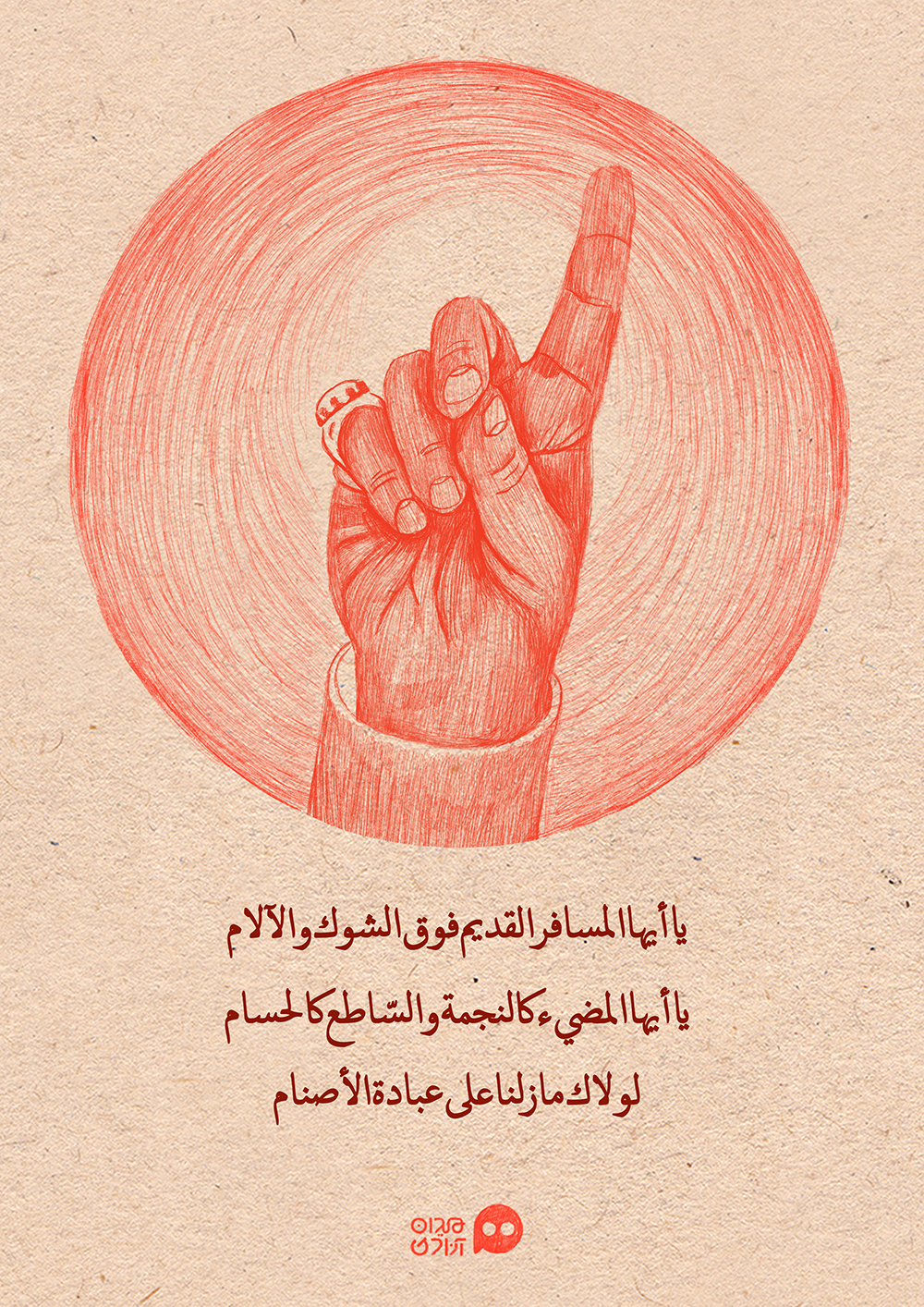 در تصویرگری بالا این سه سطر از نزار قبانی خطاب به سید حسن نصرالله درج شده است: