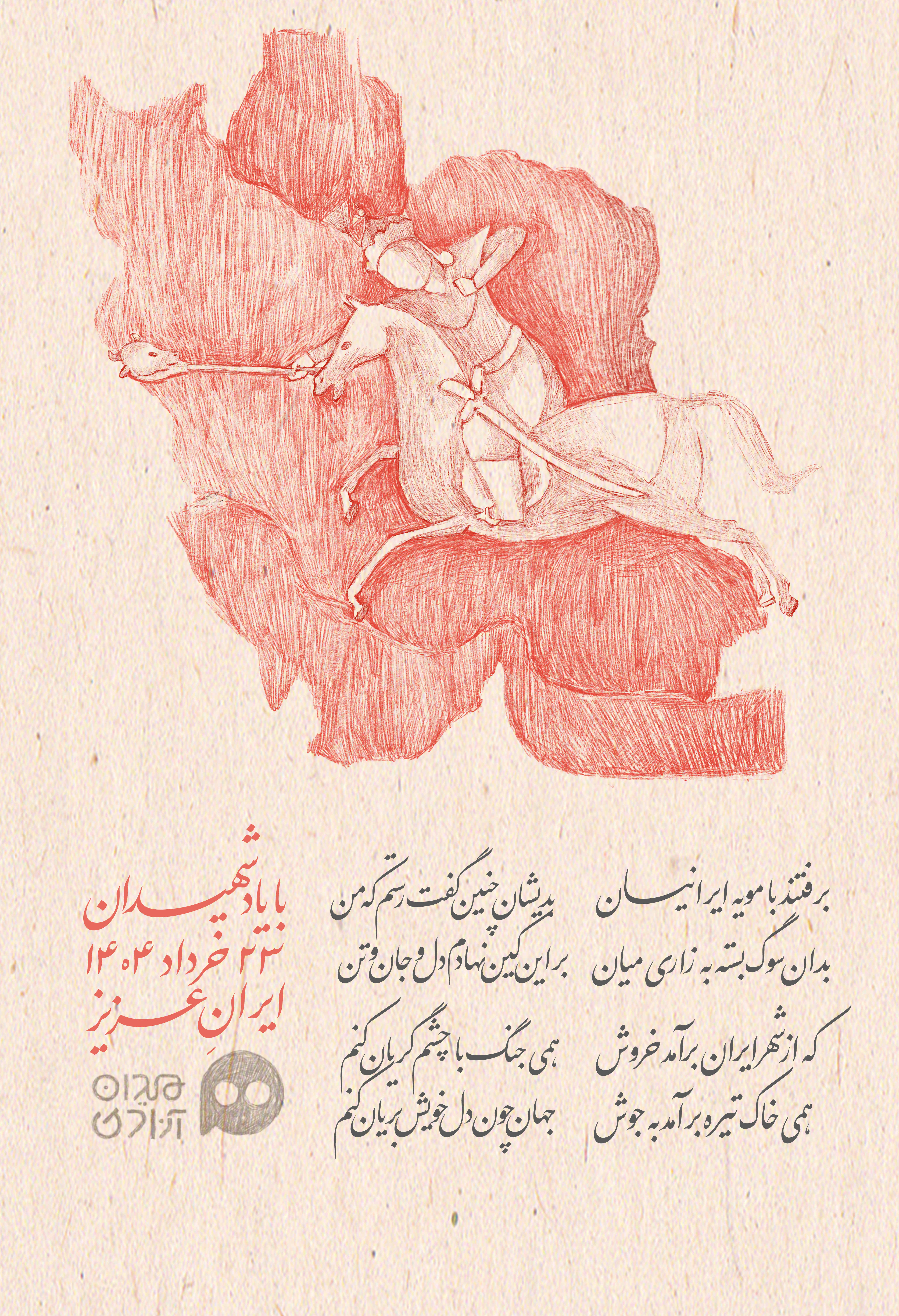 این پوستر یادمان با سطرهایی از ماجرای سوگ سیاووش در شاهنامه فردوسی، ادای احترام تحریریه مجله میدان آزادی، به شهیدانِ 23 خرداد 1404 ایران عزیز است.