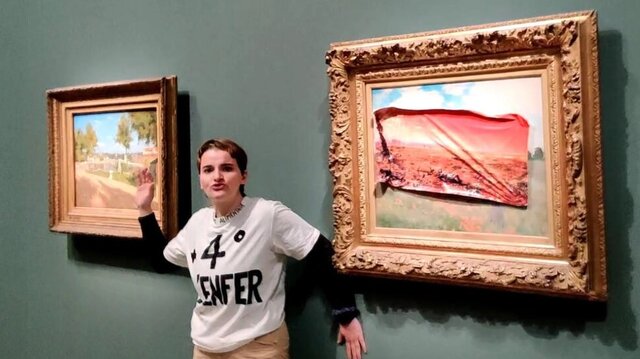 و خبر دیگر از عالم نقاشی اینکه معترضان محیطزیستی به سراغ تابلوی «شقایقها» اثر «کلود مونه» رفتند و با چسباندن تصویری روی آن نسبت به گرم شدن زمین هشدار دادند. این تابلوی نقاشی در سال ۱۸۷۳ میلادی کشیده شده و در آن مردم درحالی که با چتر در زمینی مملو از شقایقها نوشکفته حرکت میکنند، به تصویر کشیده شدهاند.