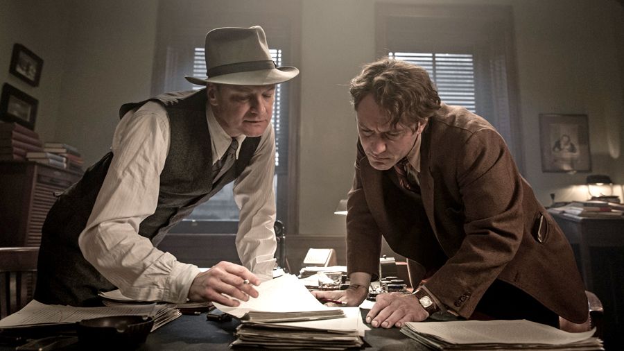 «کالین فرث» در نقش «مکس پرکینز» (سمت چپ) و «جود لا» در نقش «توماس ولف»(سمت راست) در فیلم سینمایی «نابغه» محصول سال 2016