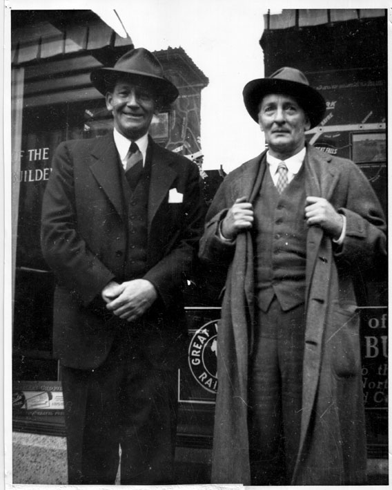برادر توماس ولف، فرد ولف (سمت چپ) به همراه مکسول پرکینز، ایستاده در خیابانی در شهر نیویورک در سال 1943